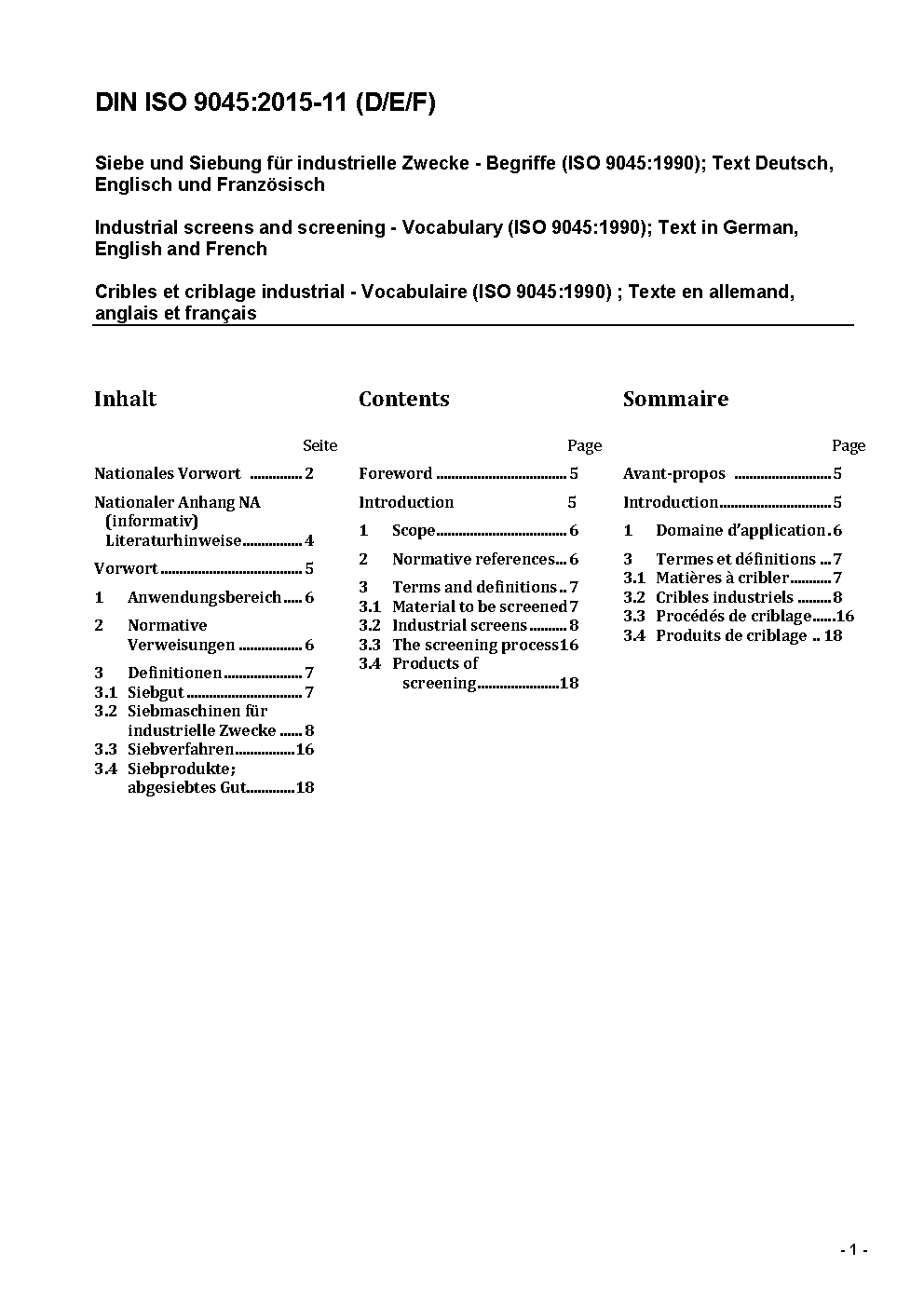 Siebe und Siebung für industrielle Zwecke - Begriffe (ISO 9045:1990); Text Deutsch, Englisch und Französisch