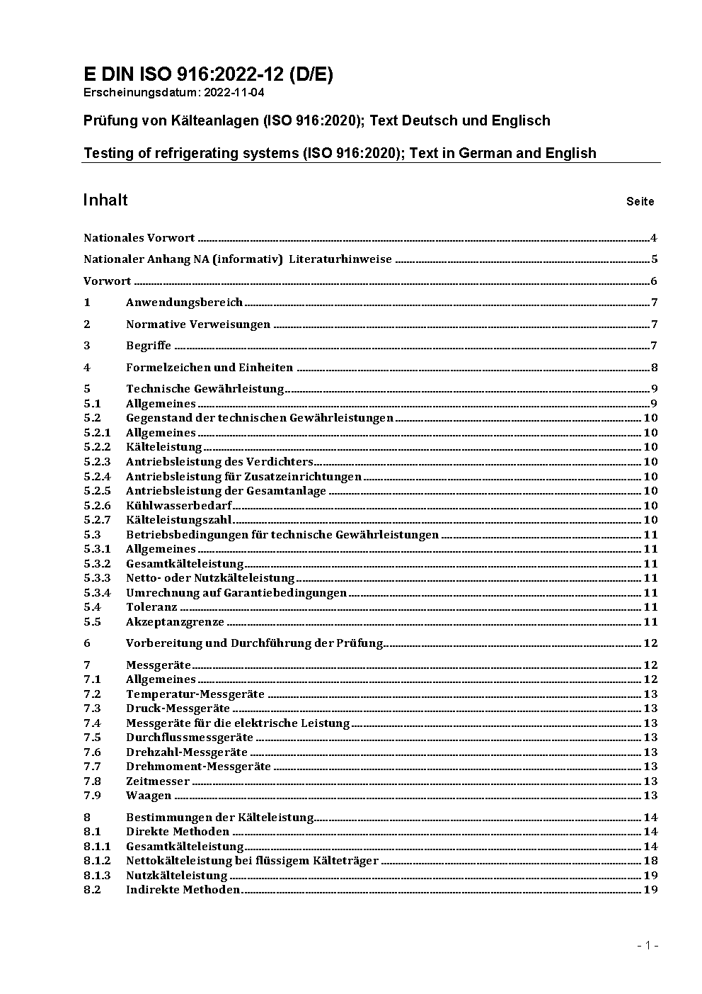 Prüfung von Kälteanlagen (ISO 916:2020)