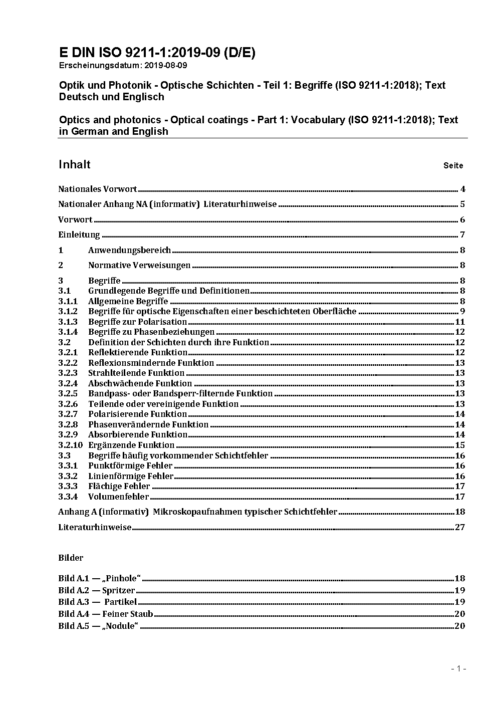Optik und Photonik - Optische Schichten - Teil 1: Begriffe (ISO 9211-1:2010)