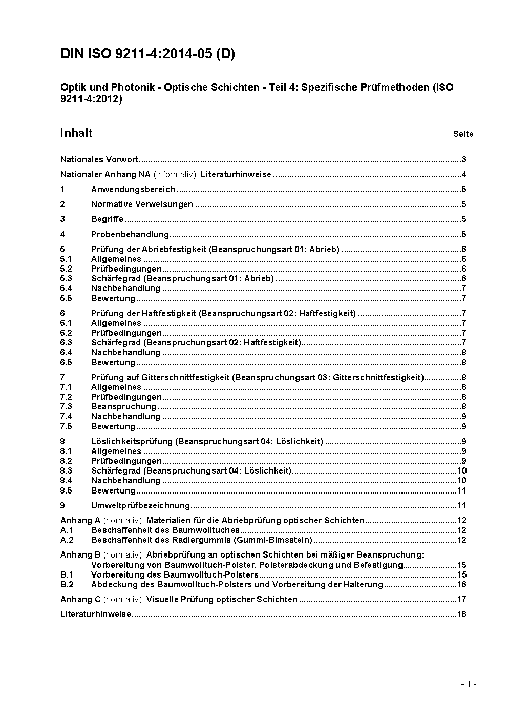 Optik und optische Instrumente - Optische Schichten - Teil 4: Spezifische Prüfmethoden (ISO 9211-4:2006)