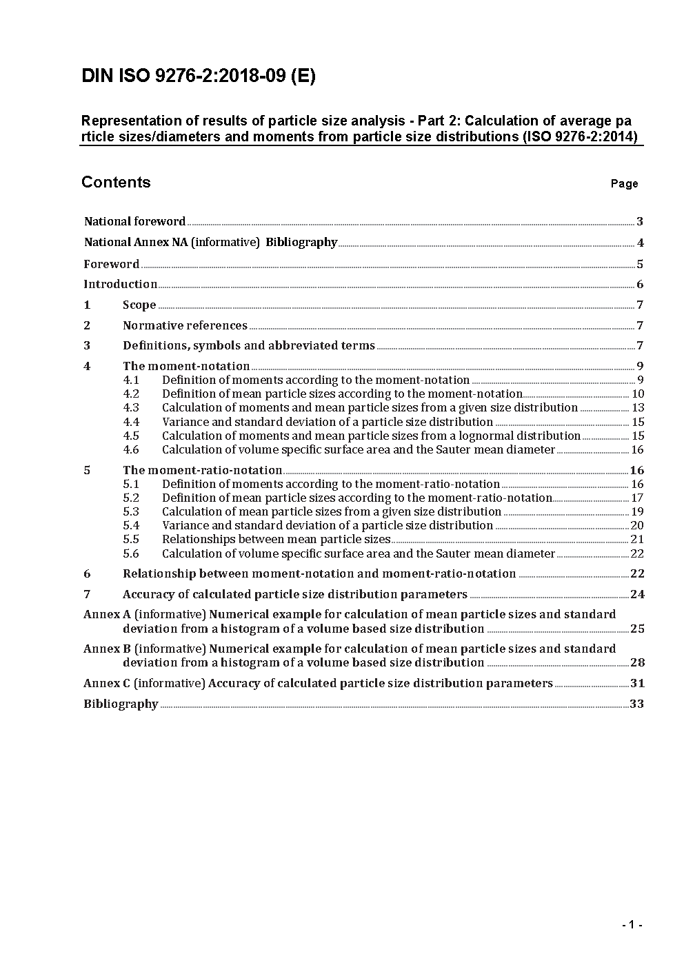 Representation of results of particle size analysis - Part 2: Calculation of average particle sizes/diameters and moments from particle size distributions (ISO 9276-2:2001)