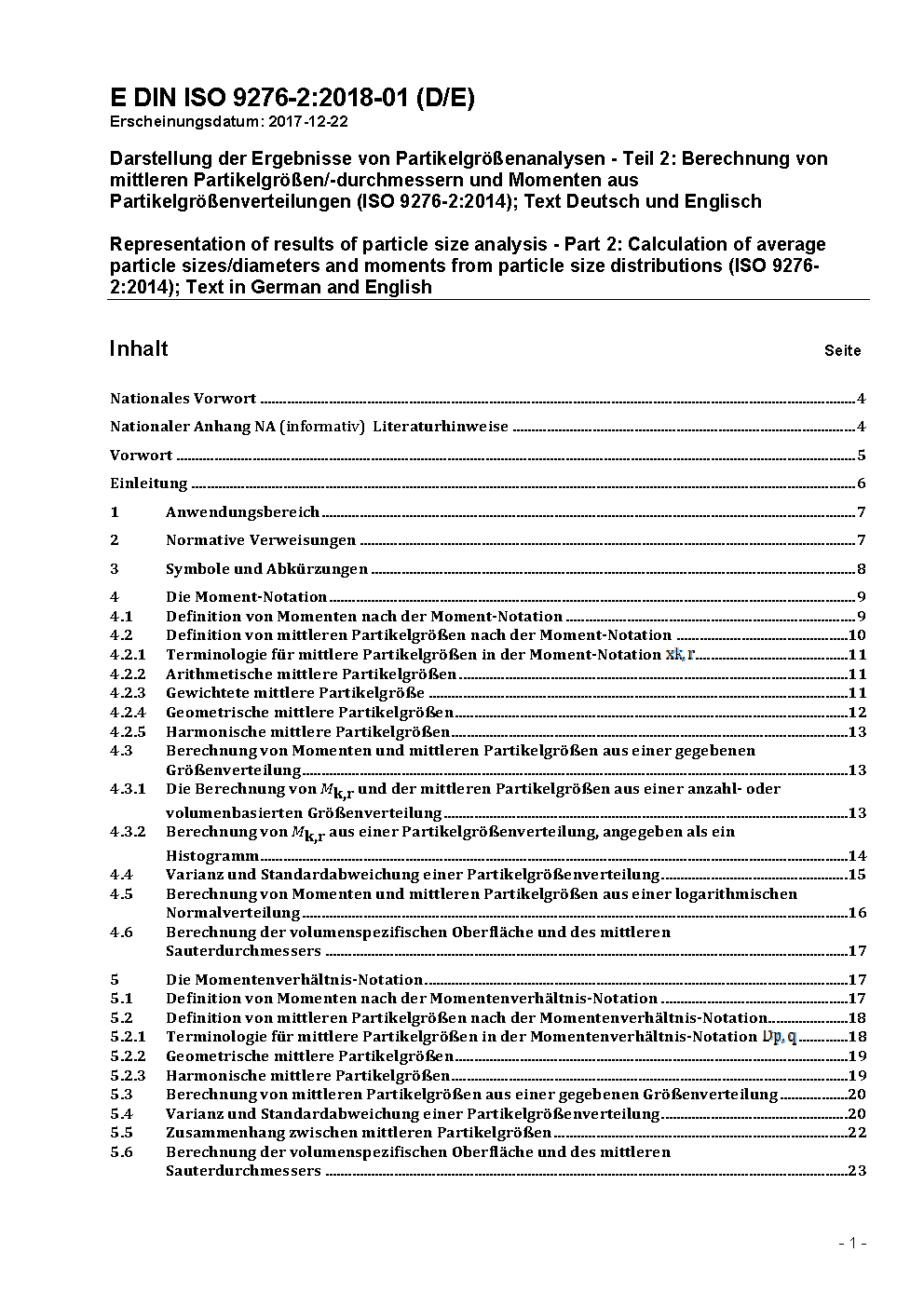 Darstellung der Ergebnisse von Partikelgrößenanalysen - Teil 2: Berechnung von mittleren Partikelgrößen/-durchmessern und Momenten aus Partikelgrößenverteilungen (ISO 9276-2:2001)