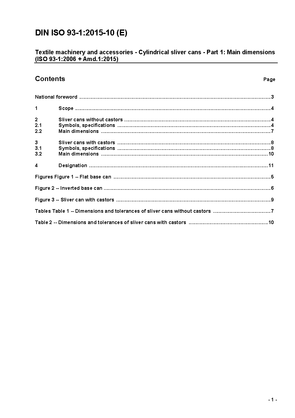 Textilmaschinen und Zubehör - Runde Spinnkannen - Teil 1: Hauptmaße (ISO 93-1:2006)