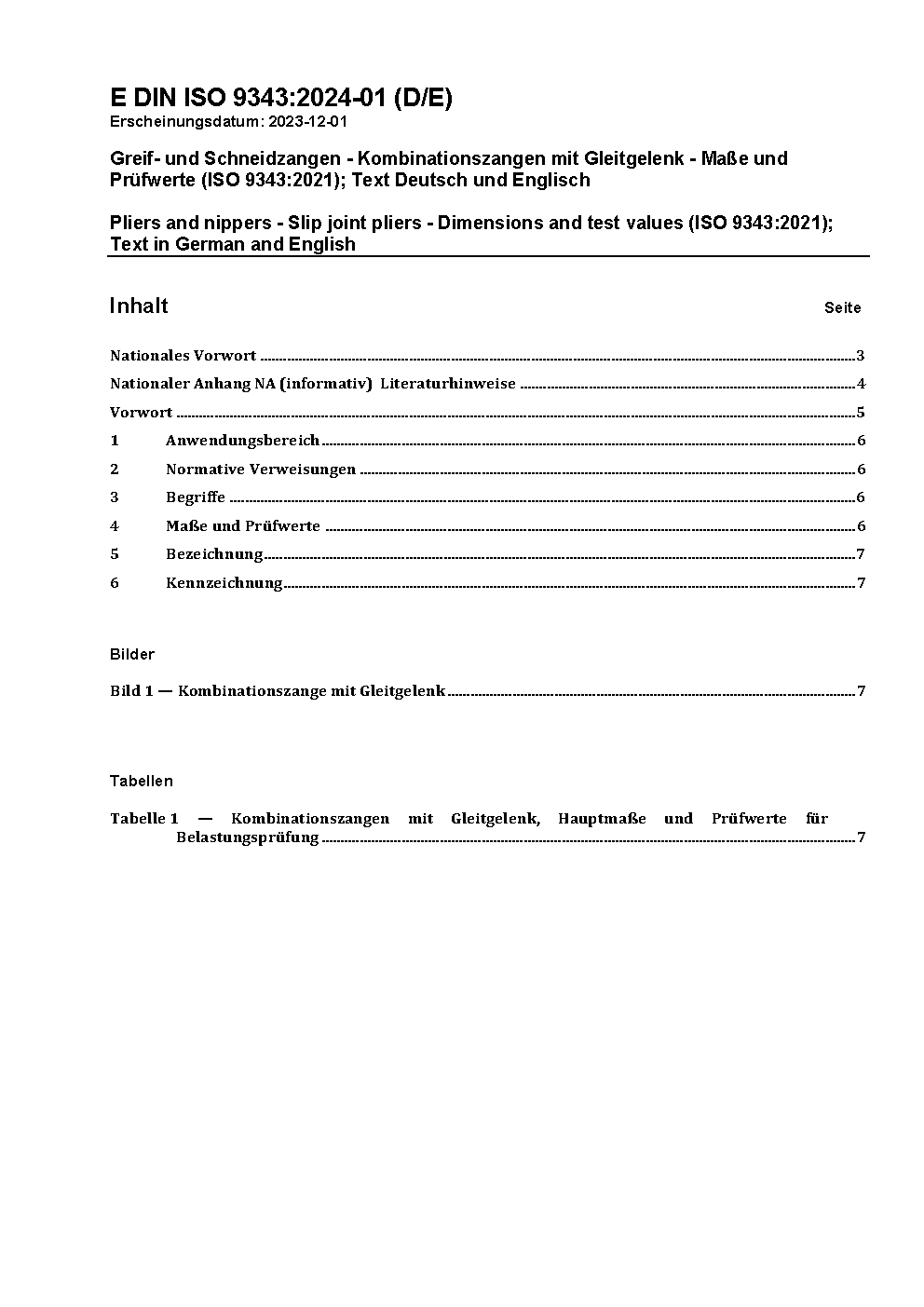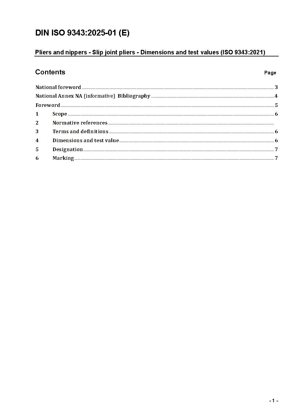 Pliers and nippers - Slip joint pliers - Dimensions and test values (ISO/DIS 9343:2002)