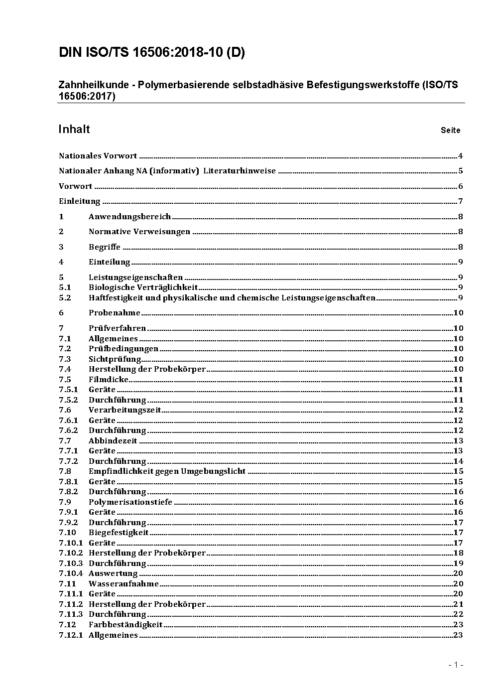 Dentistry - Polymer-based luting materials containing adhesive components (ISO/TS 16506:2017); Text in German and English