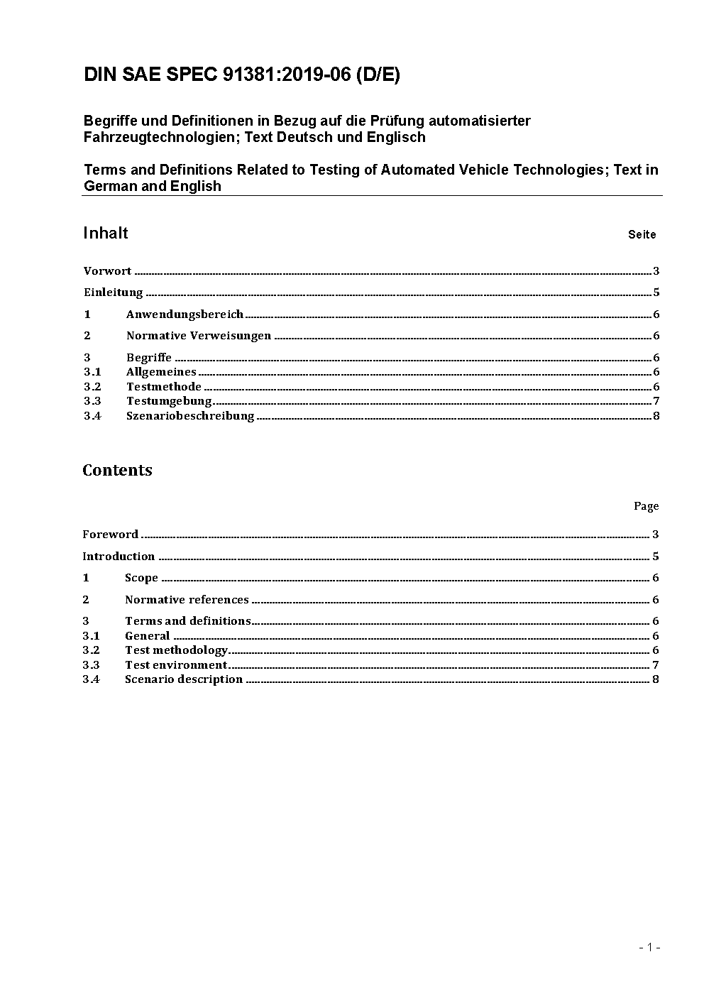 Terms and Definitions Related to Testing of Automated Vehicle Technologies; Text in German and English