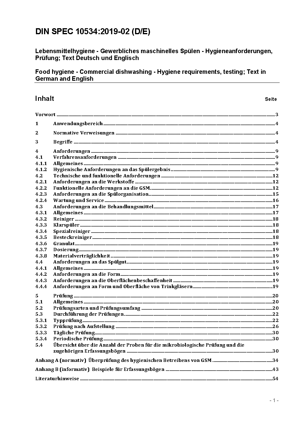 Lebensmittelhygiene - Gewerbliches maschinelles Spülen - Hygieneanforderungen, Prüfung; Text Deutsch und Englisch