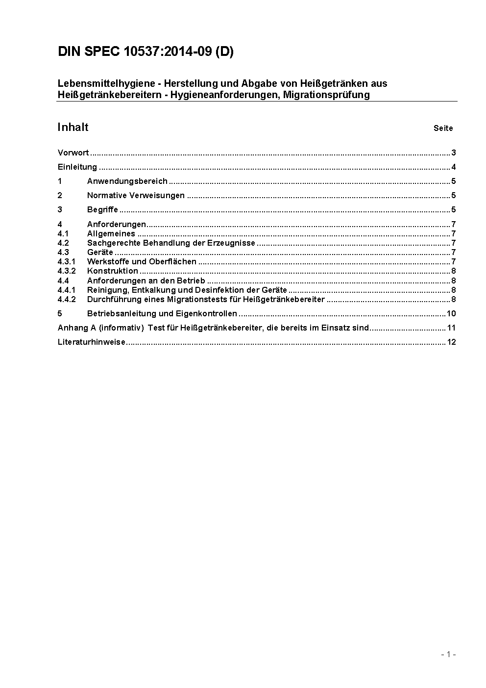 Lebensmittelhygiene - Herstellung und Abgabe von Heißgetränken aus Heißgetränkebereitern - Hygieneanforderungen, Migrationsprüfung