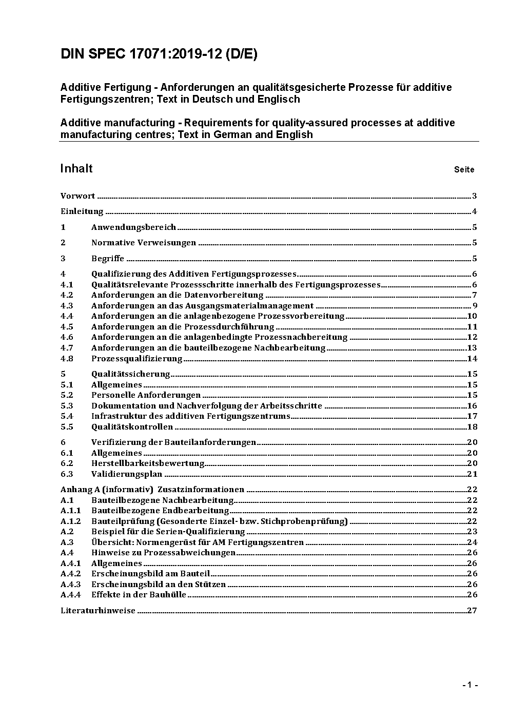 Additive Fertigung - Anforderungen an qualitätsgesicherte Prozesse für additive Fertigungszentren; Text in Deutsch und Englisch