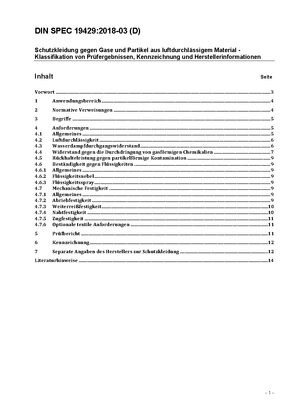 Schutzkleidung gegen Gase und Partikel aus luftdurchlässigem Material - Klassifikation von Prüfergebnissen, Kennzeichnung und Herstellerinformationen