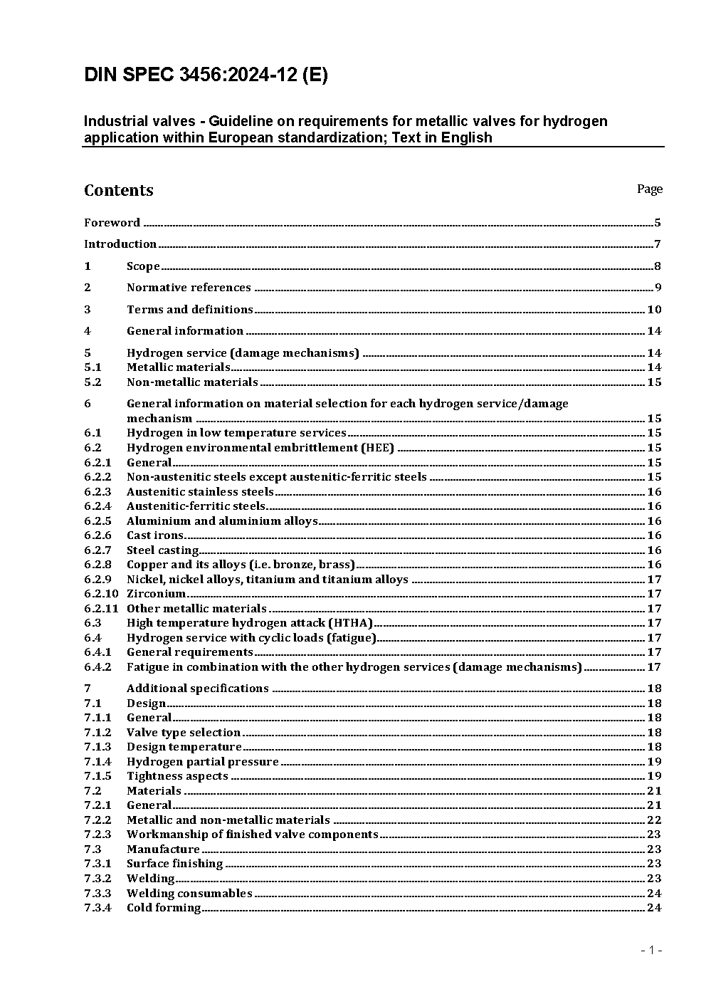 Industriearmaturen - Leitfaden zu Anforderungen an metallische Armaturen für Wasserstoffanwendungen im Rahmen der europäischen Normung; Text Englisch