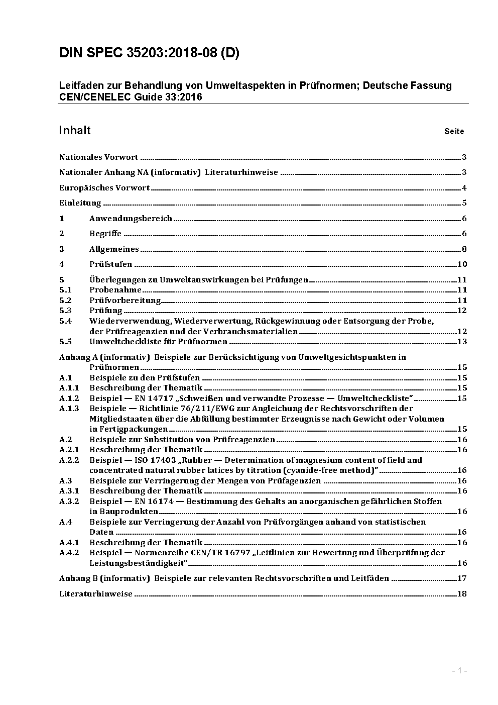 Leitfaden zur Behandlung von Umweltaspekten in Prüfnormen; Deutsche Fassung CEN/CENELEC Guide 33:2016
