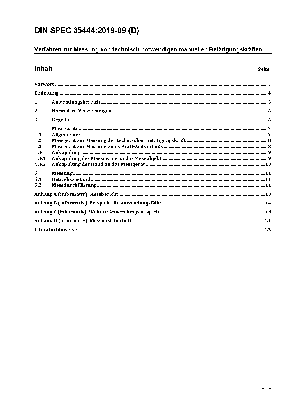 Verfahren zur Messung von technisch notwendigen manuellen Betätigungskräften