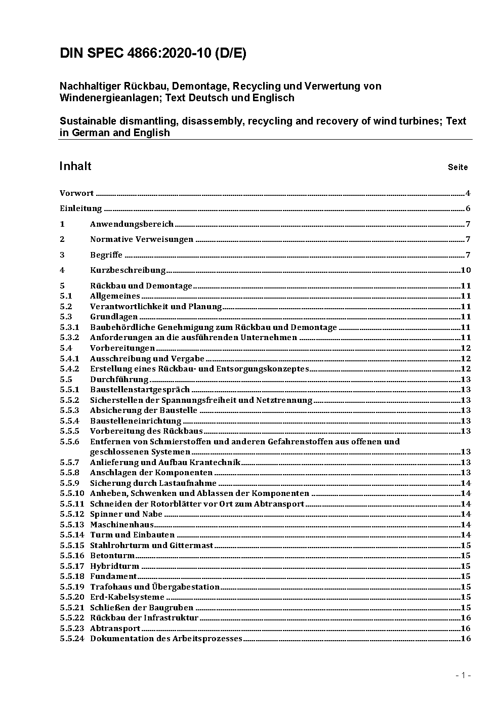 Sustainable dismantling, disassembly, recycling and recovery of wind turbines; Text in German and English