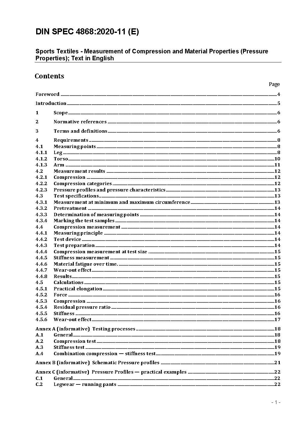 Sporttextilien - Messung der Kompressions- und Materialeigenschaften (Druckverhalten); Text Englisch