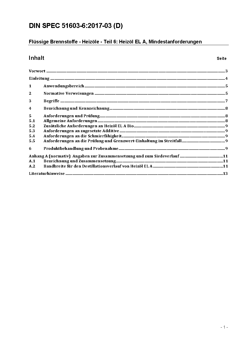 Flüssige Brennstoffe - Heizöle - Teil 6: Heizöl EL A, Mindestanforderungen