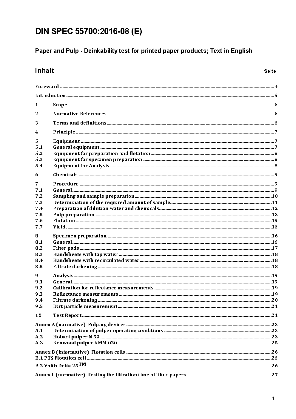 Paper and Pulp - Deinkability test for printed paper products; Text in English