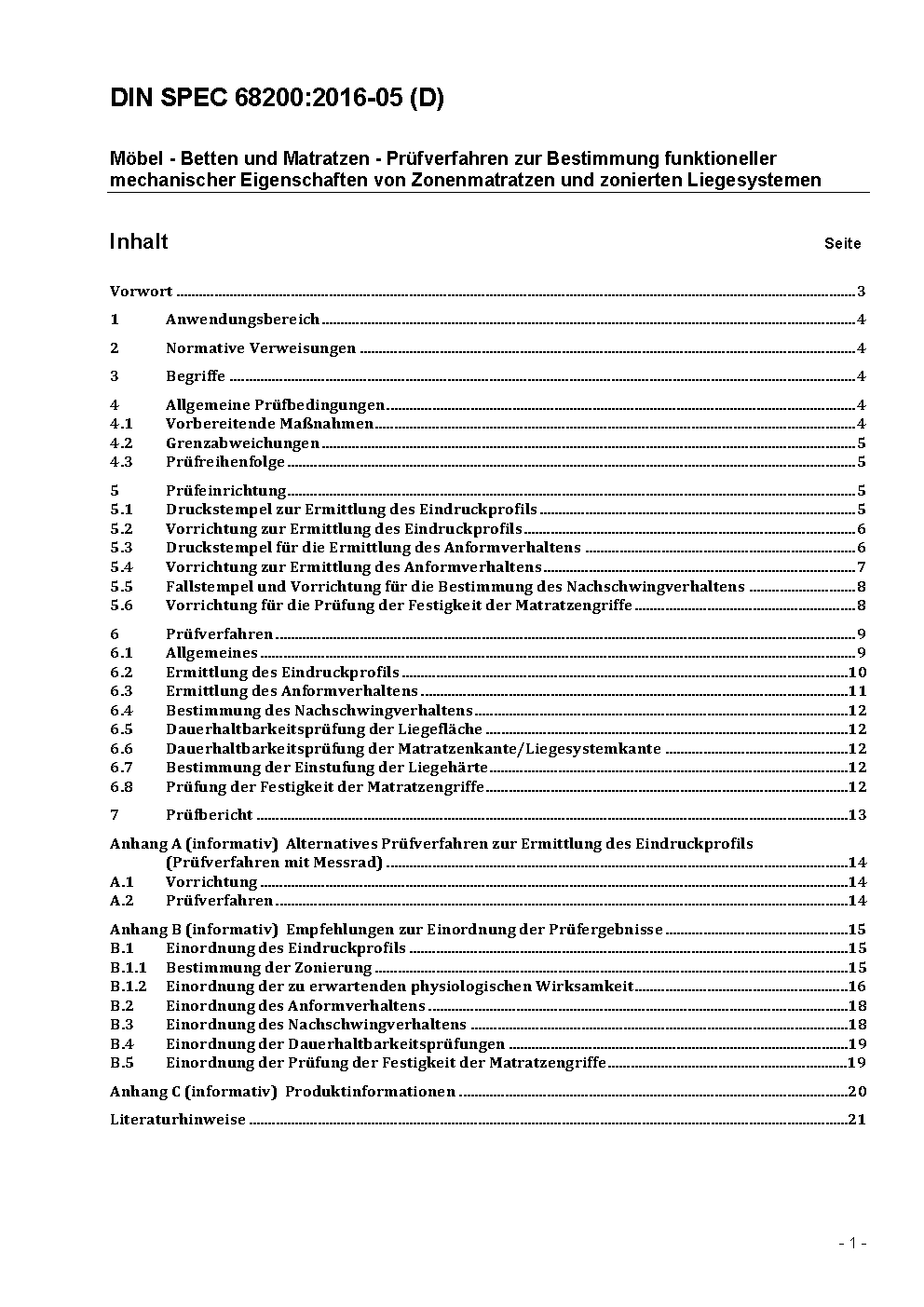 Möbel - Betten und Matratzen - Prüfverfahren zur Bestimmung funktioneller mechanischer Eigenschaften von Zonenmatratzen und zonierten Liegesystemen