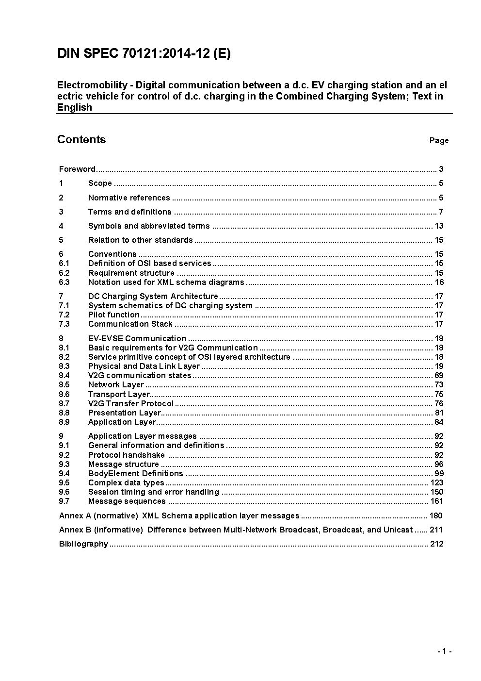 Electromobility - Digital communication between a d.c. EV charging station and an electric vehicle for control of d.c. charging in the Combined Charging System; Text in English