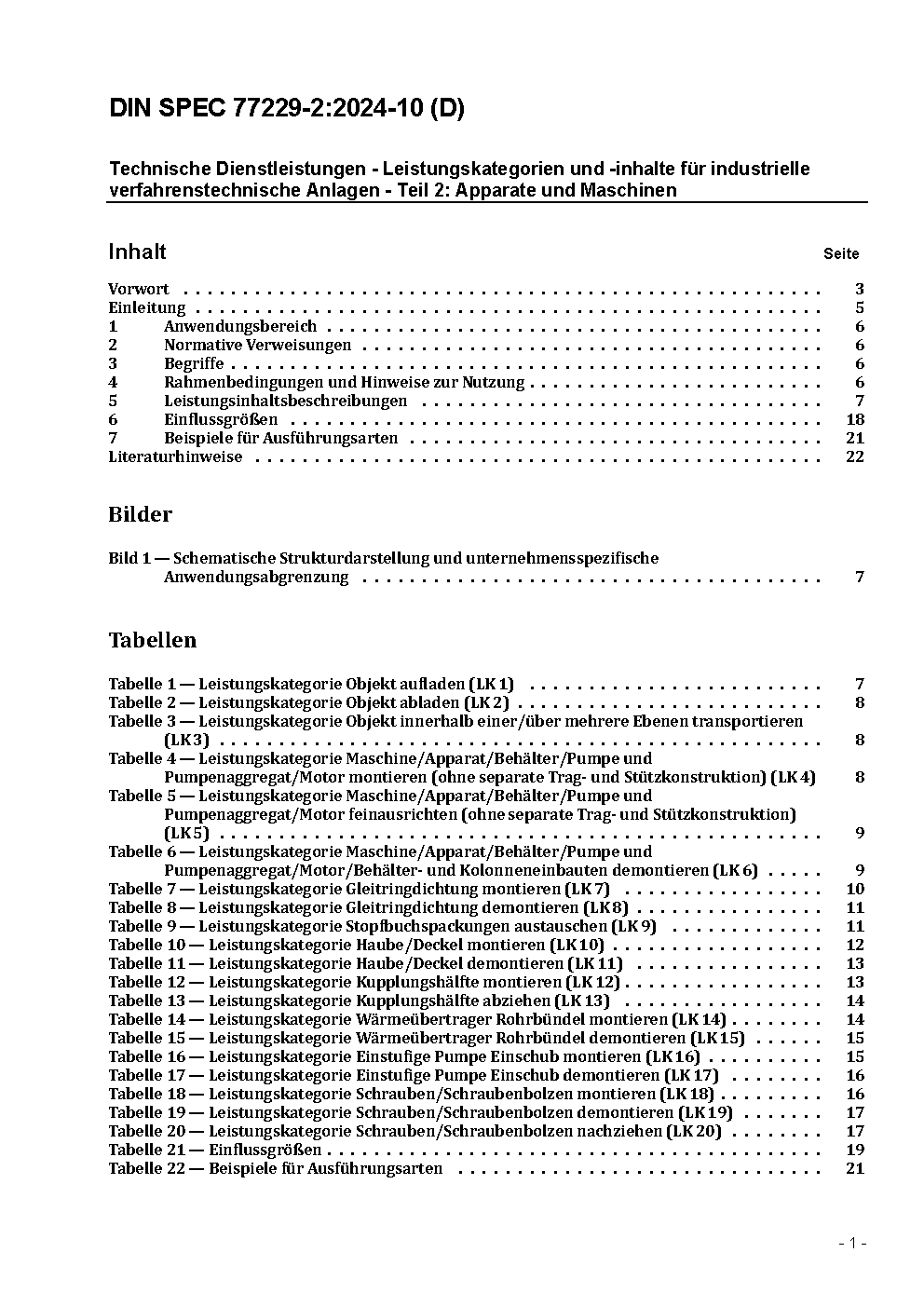 Technische Dienstleistungen - Leistungskategorien und -inhalte für industrielle verfahrenstechnische Anlagen - Teil 2: Apparate und Maschinen