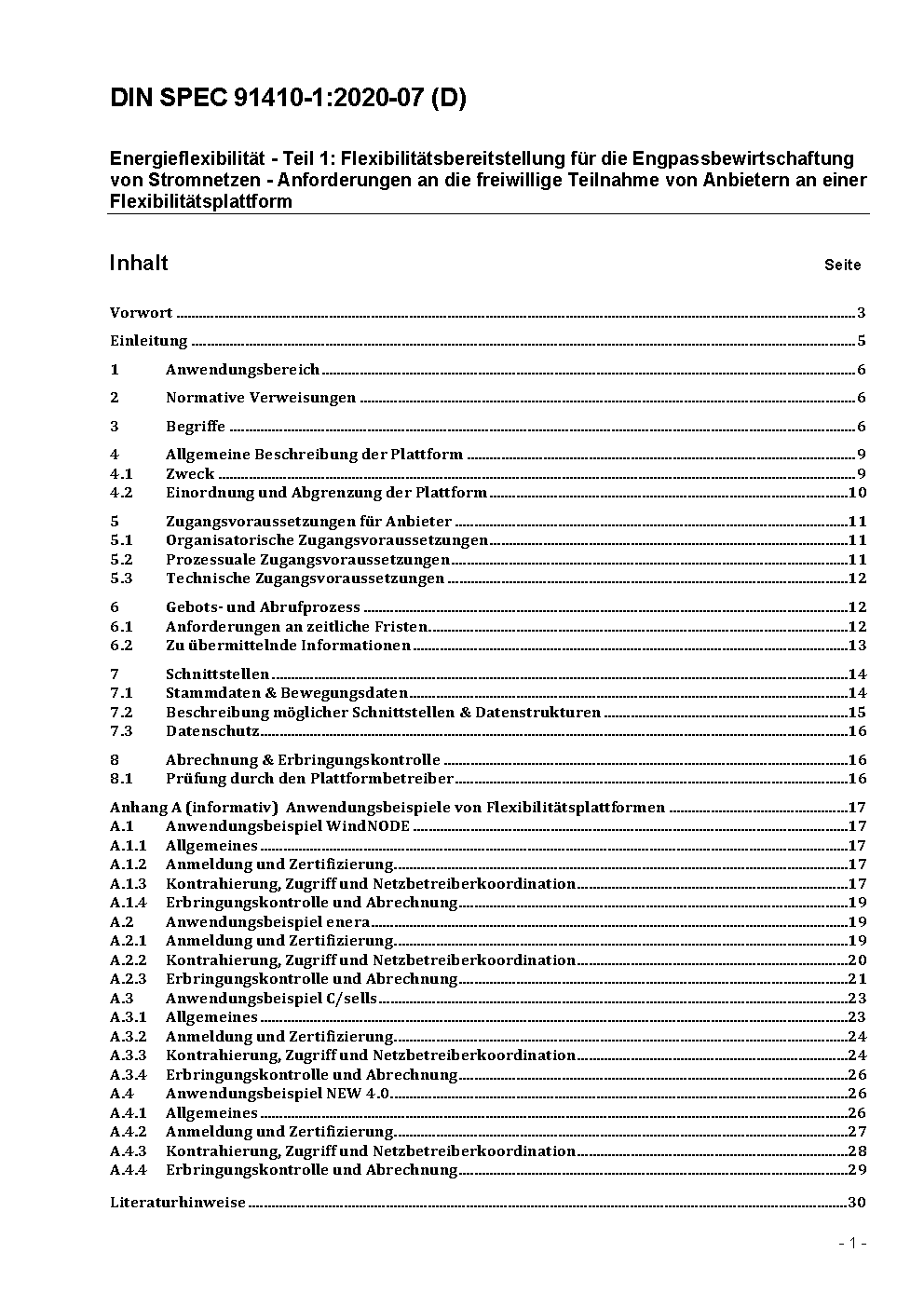 Energieflexibilität - Teil 1: Flexibilitätsbereitstellung für die Engpassbewirtschaftung von Stromnetzen - Anforderungen an die freiwillige Teilnahme von Anbietern an einer Flexibilitätsplattform