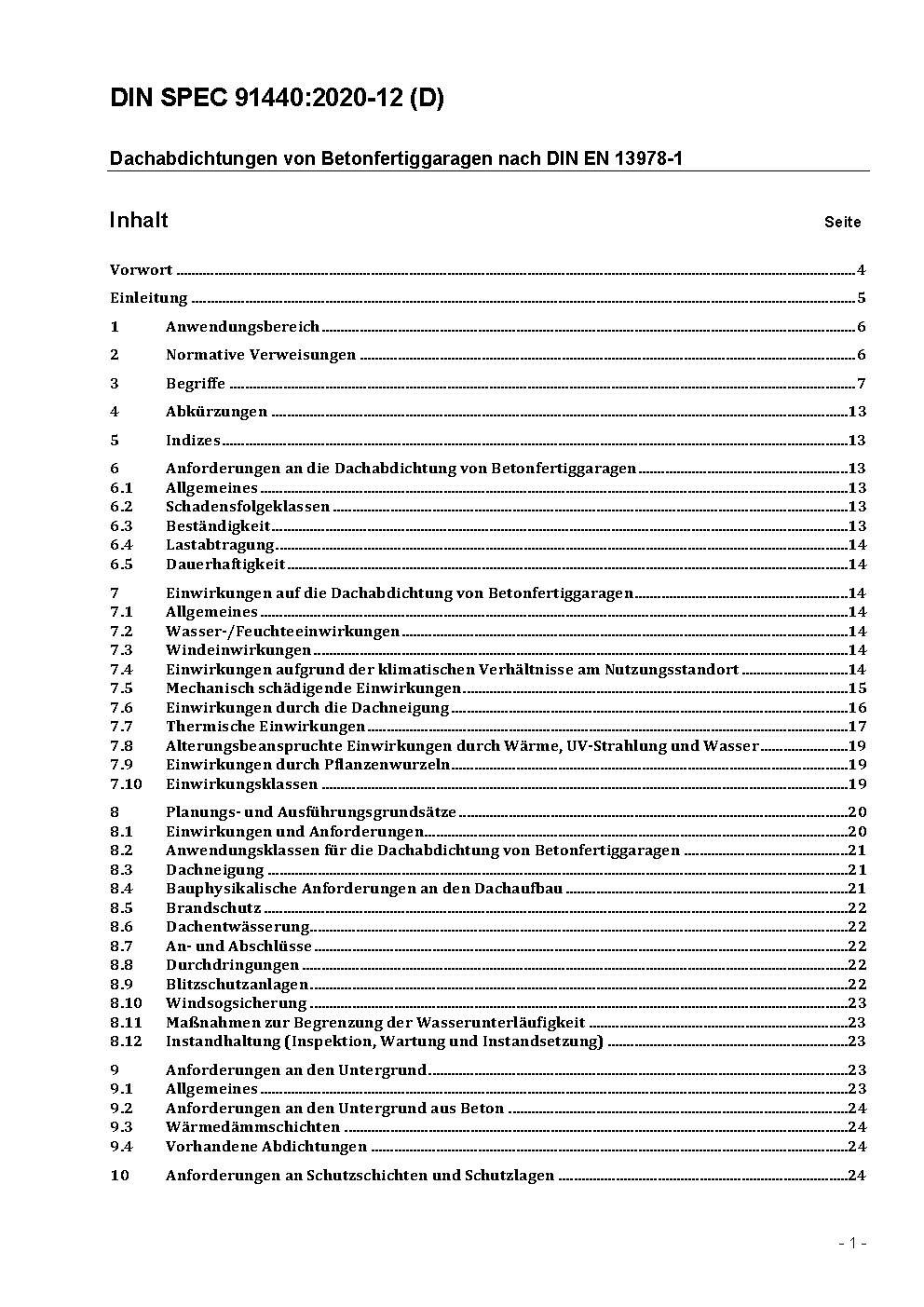 Dachabdichtungen von Betonfertiggaragen nach DIN EN 13978-1