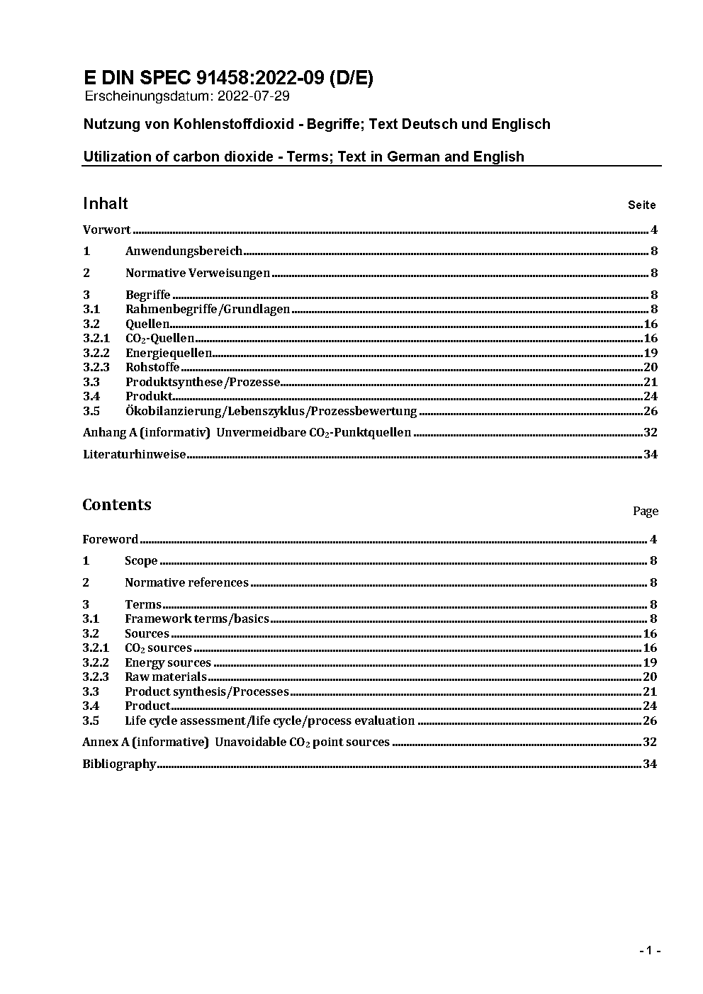 Nutzung von Kohlenstoffdioxid - Begriffe; Text Deutsch und Englisch