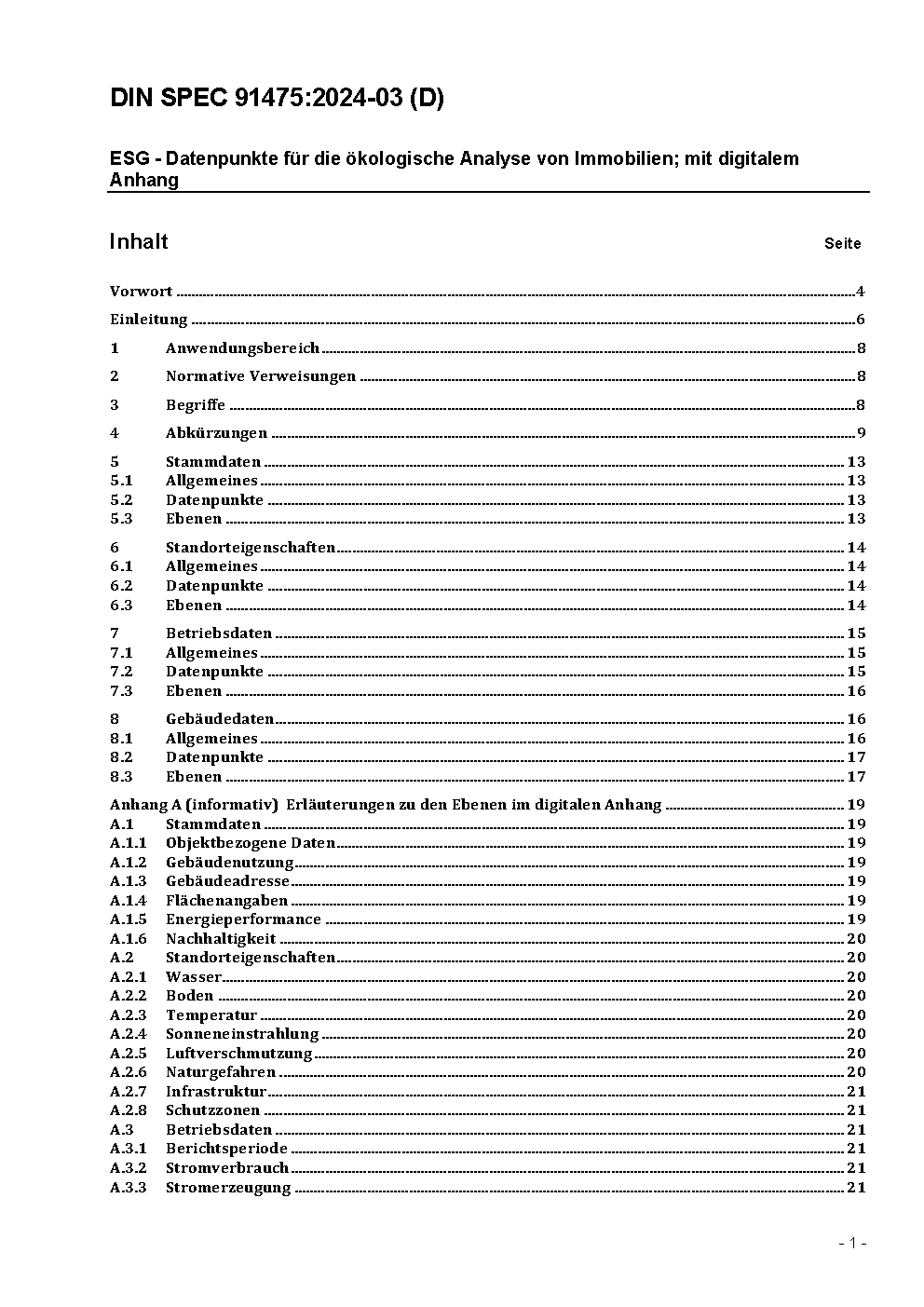 ESG - Data Point Initiative for the ecological analysis of Real Estate Stock; with digital attachment.
