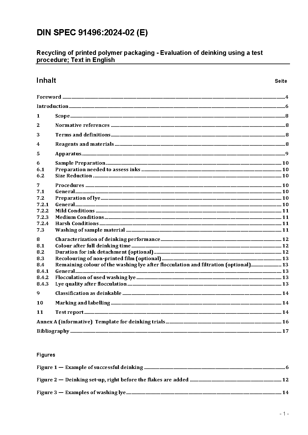 Recycling of printed polymer packaging - Evaluation of deinking using a test procedure; Text in English