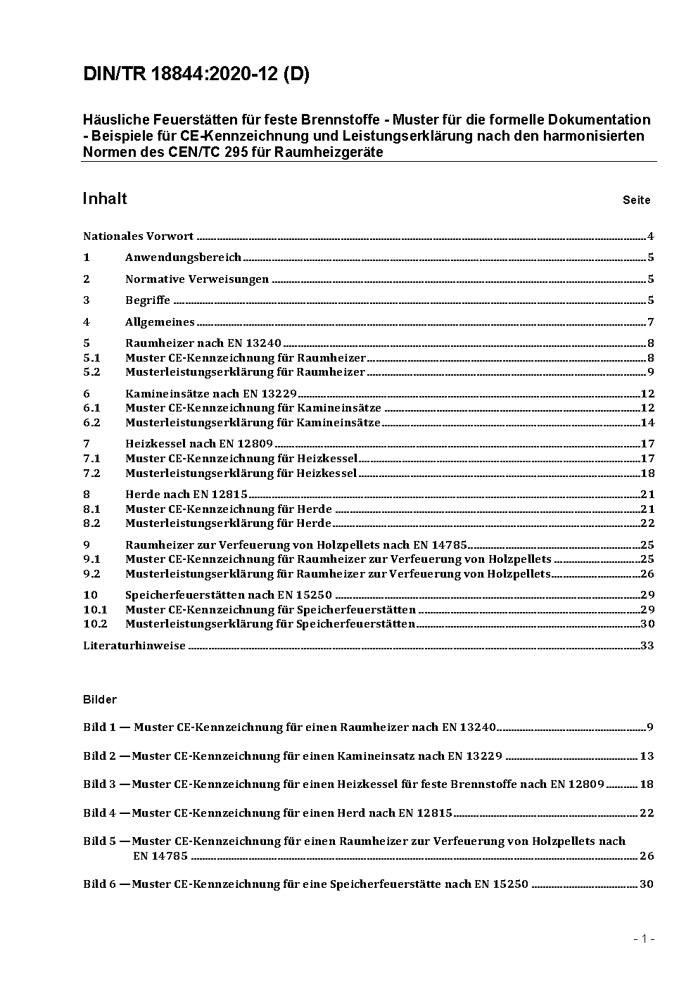 Häusliche Feuerstätten für feste Brennstoffe - Muster für die formelle Dokumentation - Beispiele für CE-Kennzeichnung und Leistungserklärung nach den harmonisierten Normen des CEN/TC 295 für Raumheizgeräte