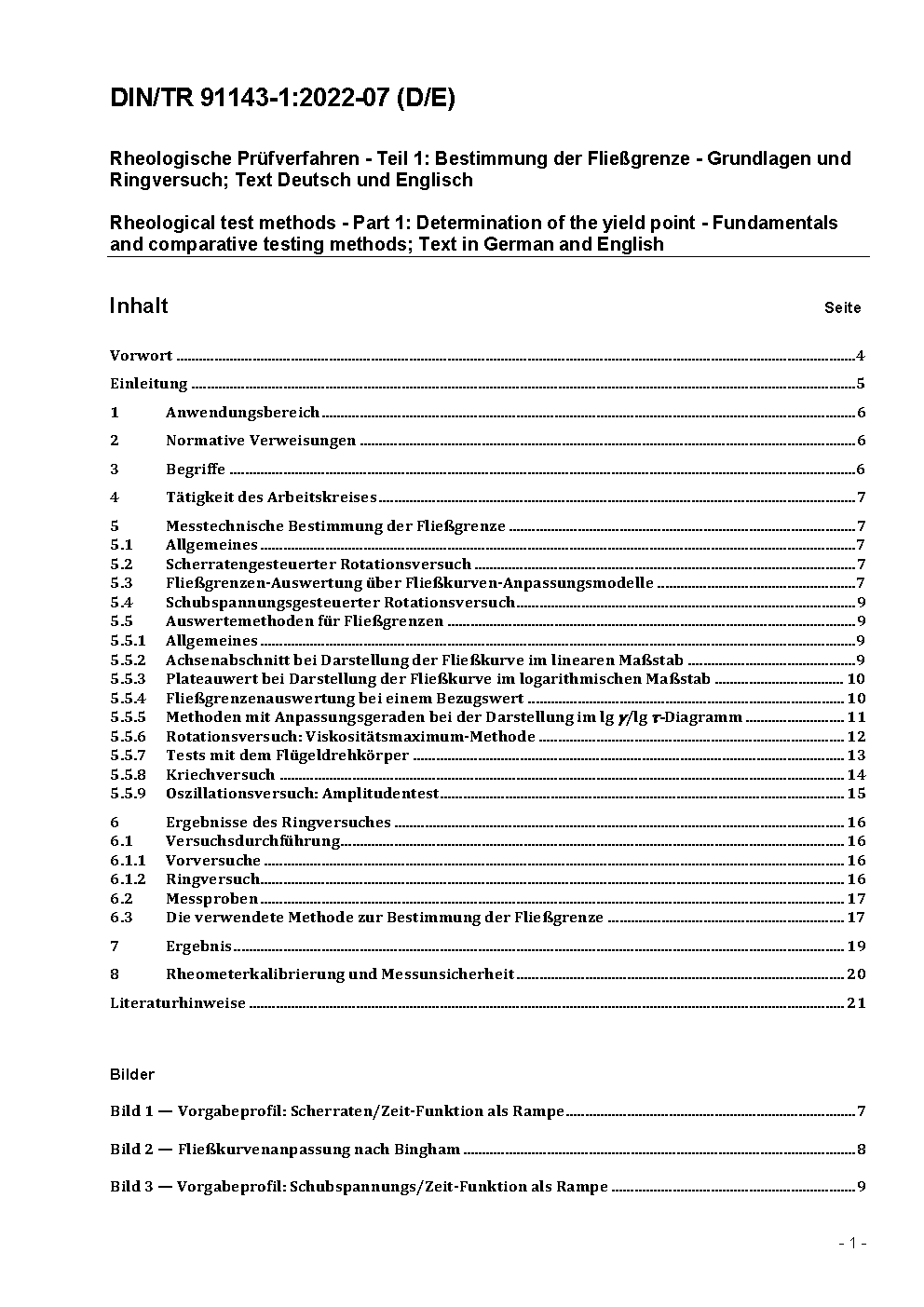 Rheologische Prüfverfahren - Teil 1: Bestimmung der Fließgrenze - Grundlagen und Ringversuch; Text Deutsch und Englisch