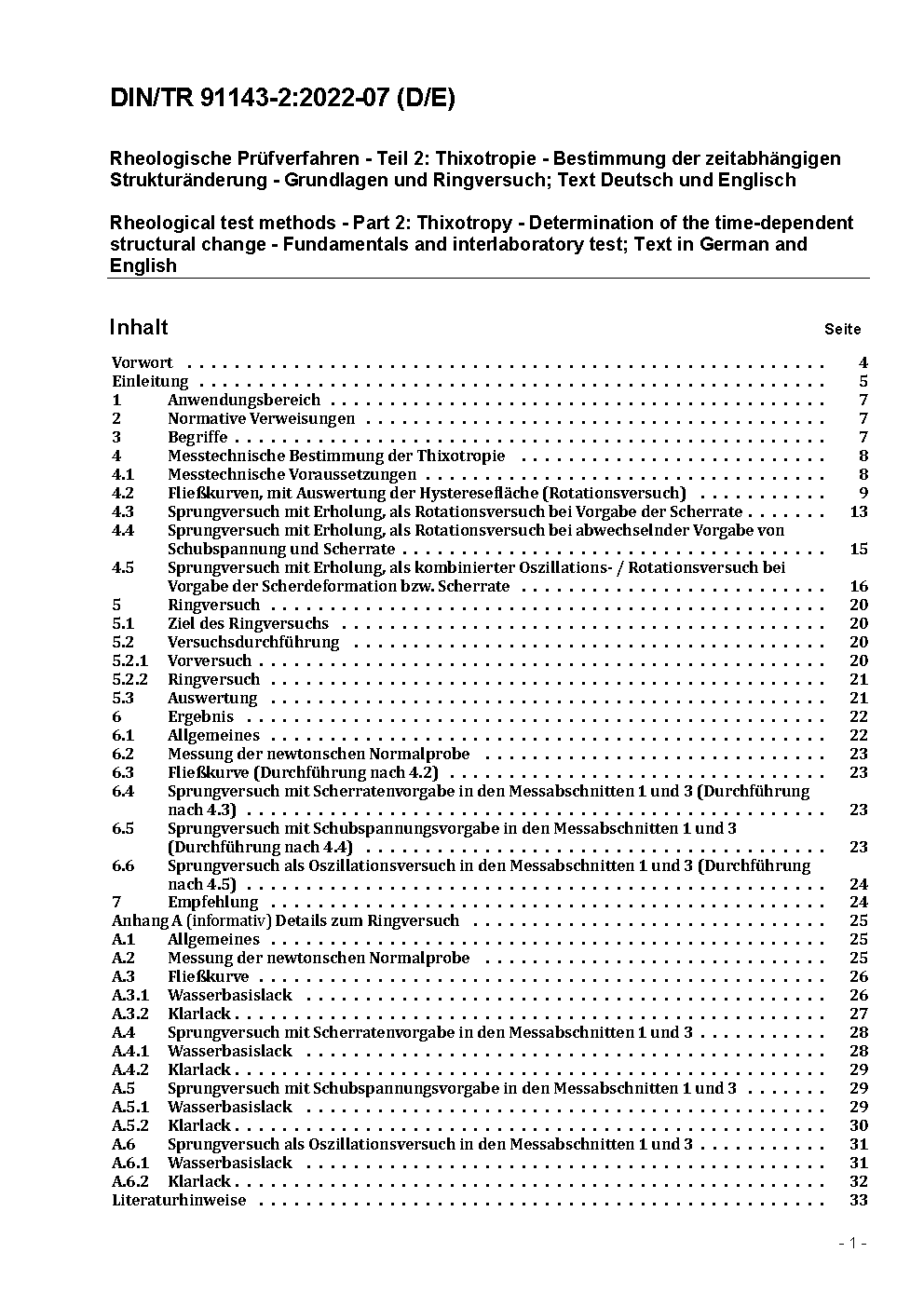 Rheologische Prüfverfahren - Teil 2: Thixotropie - Bestimmung der zeitabhängigen Strukturänderung - Grundlagen und Ringversuch; Text Deutsch und Englisch