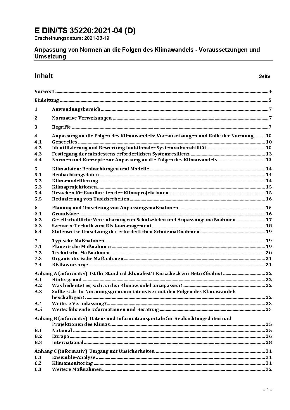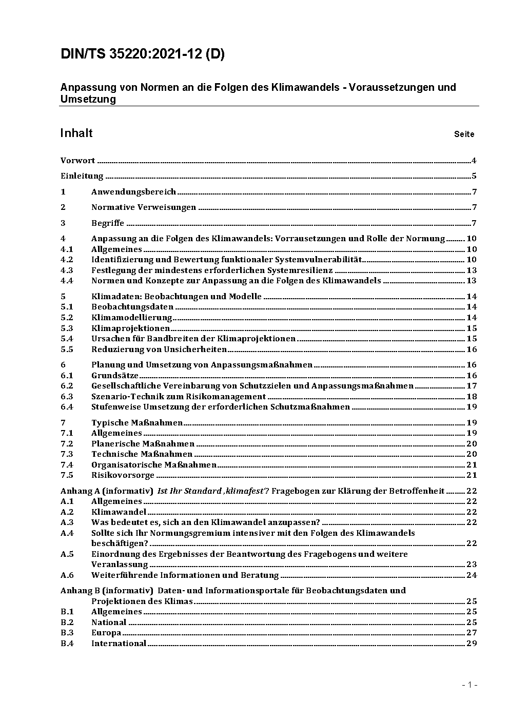 Adaptation of standards to the impacts of climate change - Preconditions and implementation