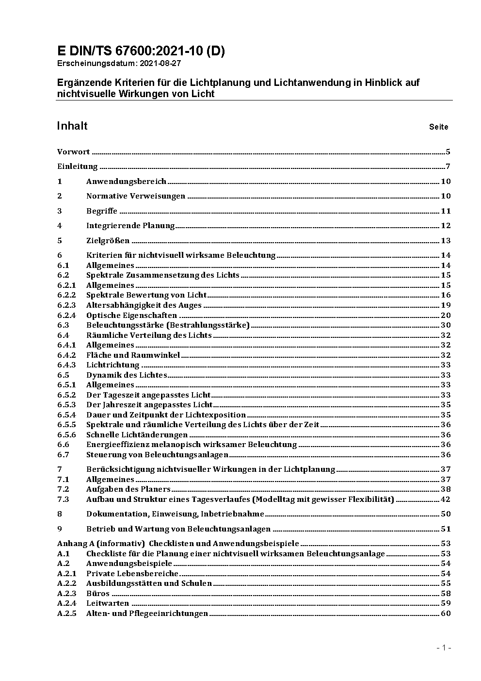 Ergänzende Kriterien für die Lichtplanung und Lichtanwendung in Hinblick auf nichtvisuelle Wirkungen von Licht