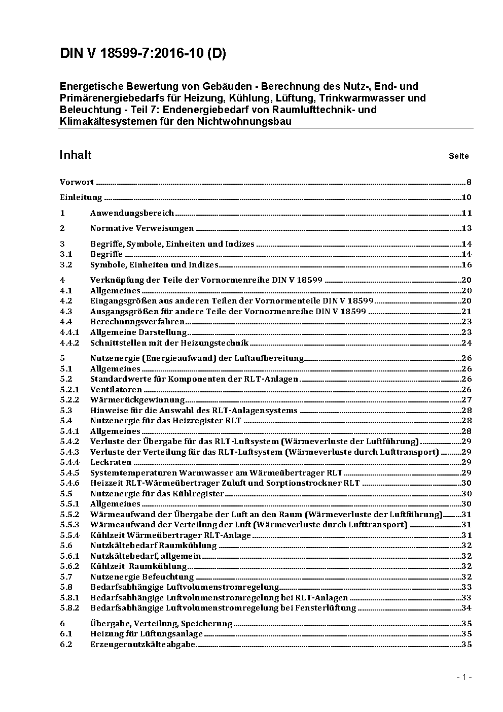 Energetische Bewertung von Gebäuden - Berechnung des Nutz-, End- und Primärenergiebedarfs für Heizung, Kühlung, Lüftung, Trinkwarmwasser und Beleuchtung - Teil 7: Endenergiebedarf von Raumlufttechnik- und Klimakältesystemen für den Nichtwohnungsbau