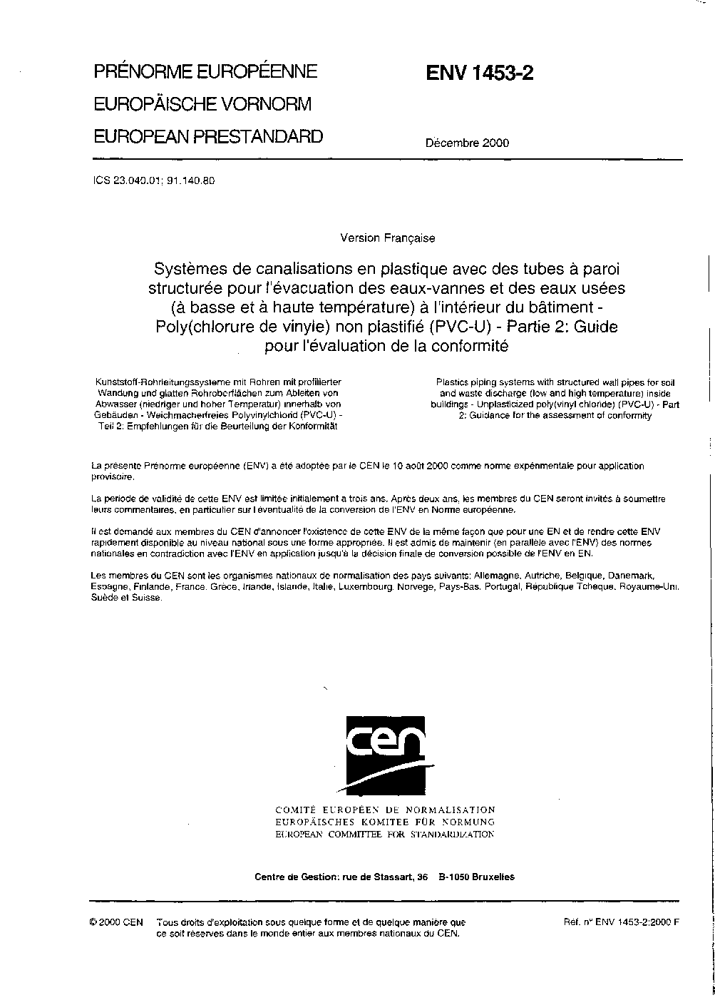 Plastics piping systems with structured wall pipes for soil and waste discharge (low and high temperature) inside buildings - Unplasticized poly(vinyl chloride) (PVC-U) - Part 2: Guidance for the assessment of conformity