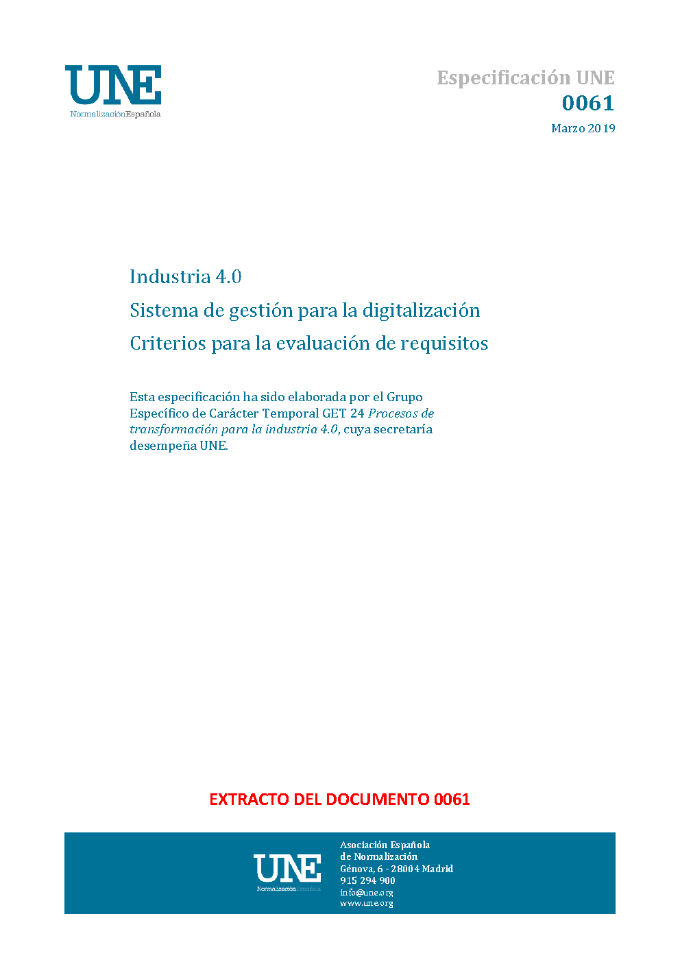 ESPECIFICACION UNE 0061:2019