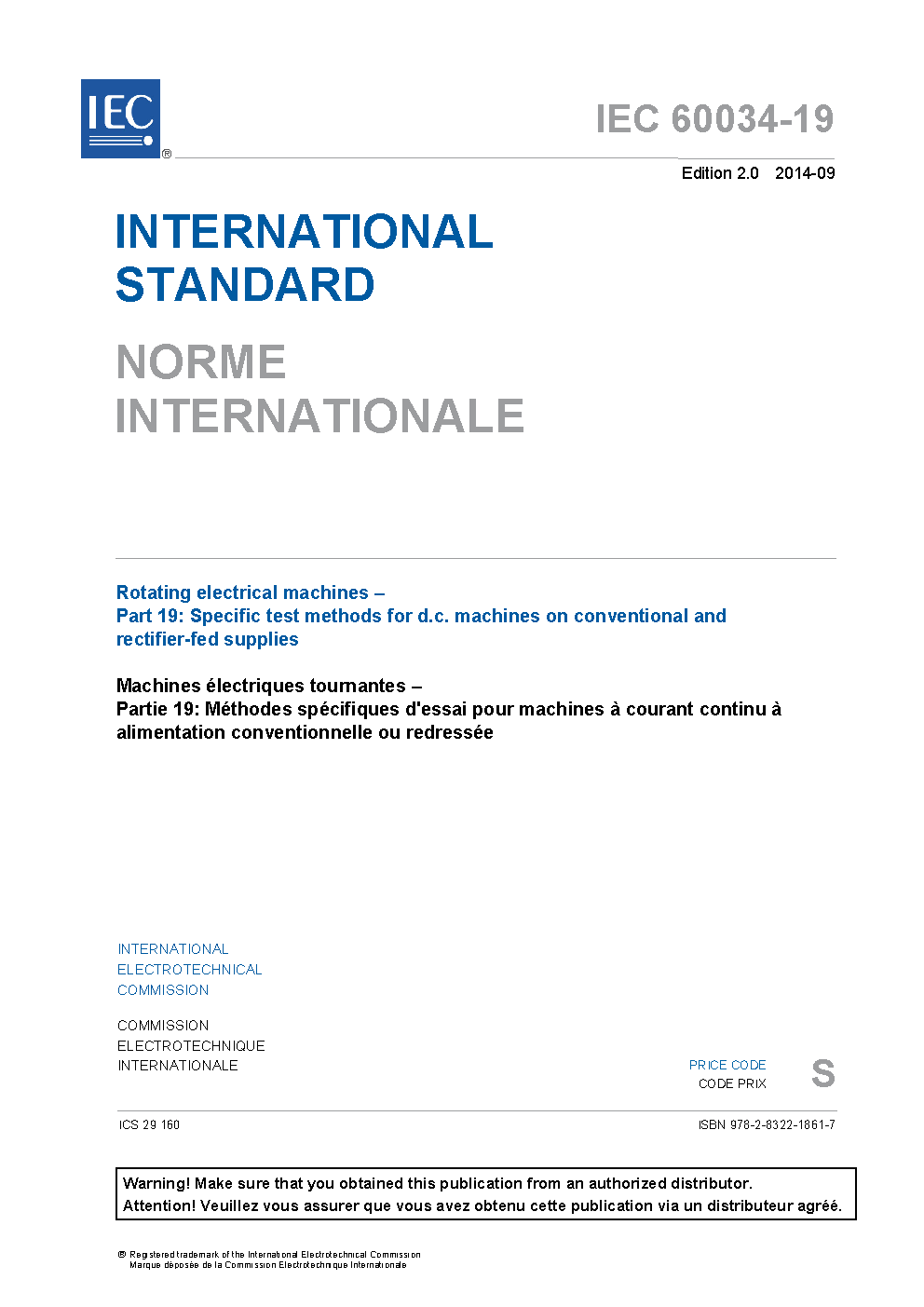 IEC 60034-19:2014 Rotating electrical machines - Part 19: Specific test methods for d.c. machines on conventional and rectifier-fed supplies