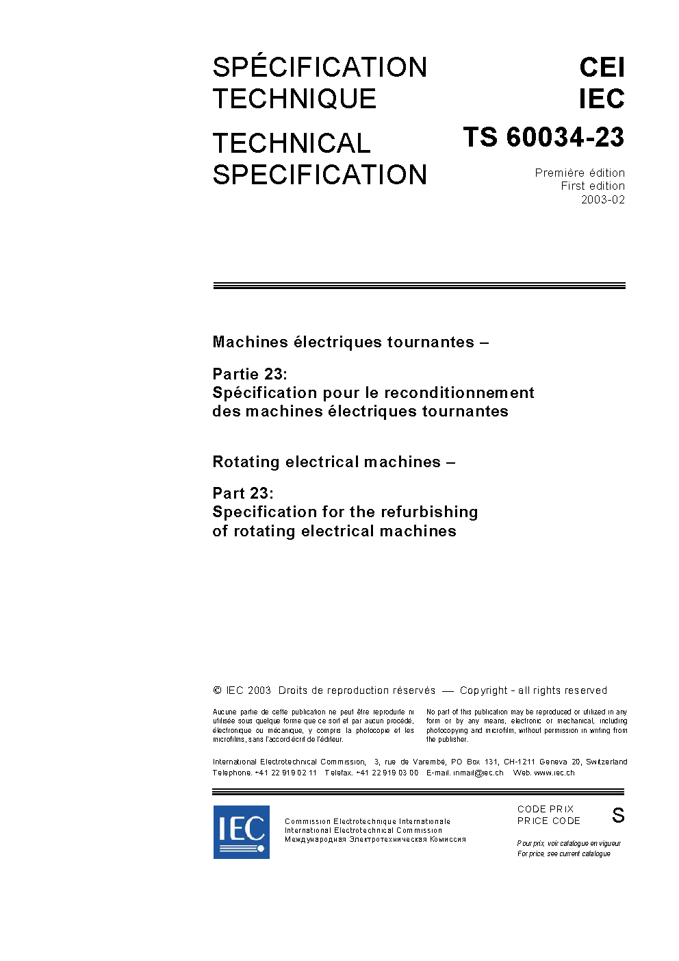 – the title of the standard has been changed to Rotating electrical machines – Part 23: Repair, overhaul and reclamation;