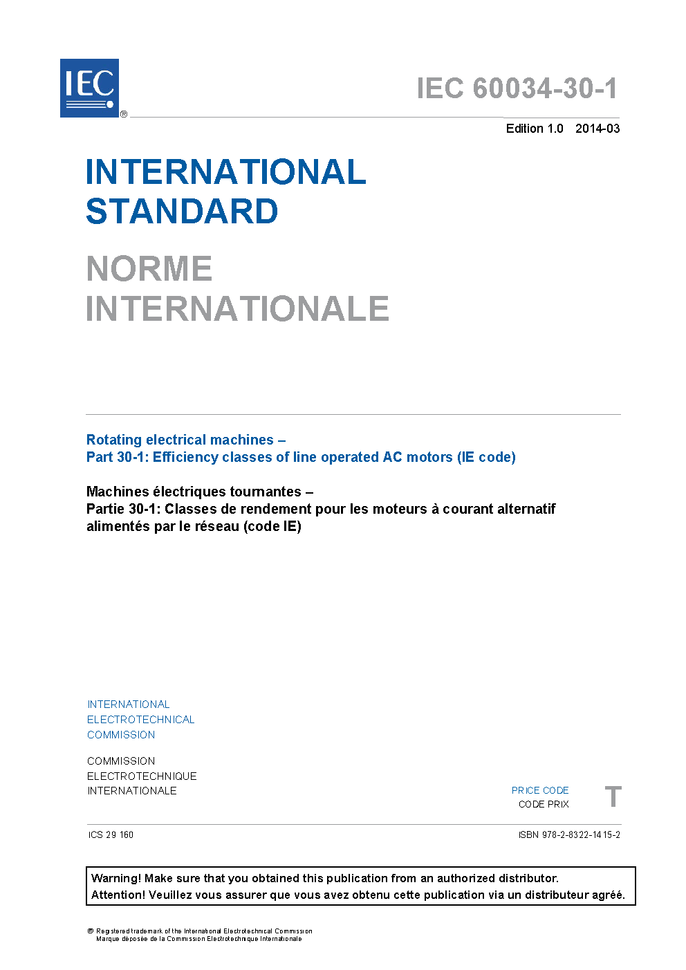 IEC 60034-30-1:2025 specifies efficiency classes for single-speed electric motors that are rated in accordance with IEC 60034-1 or IEC 60079-0 and are rated for operation on a sinusoidal either 50 Hz or 60 Hz, or both voltage supply.