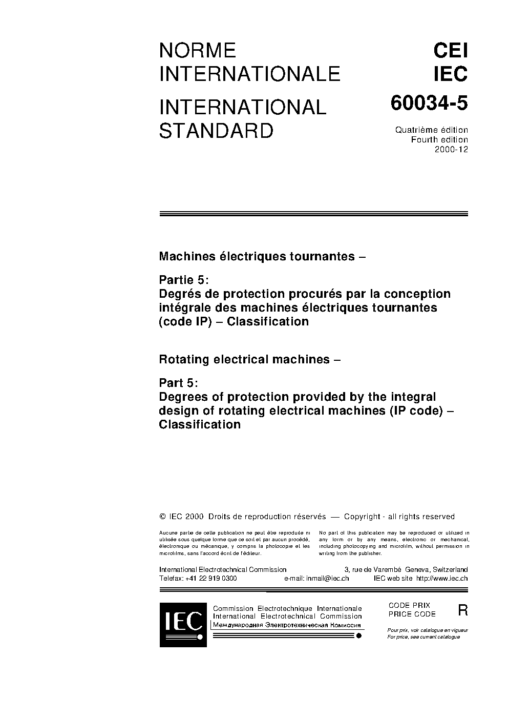 IEC 60034-5:2000/COR1:2001 Corrigendum 1 - Rotating electrical machines - Part 5: Degrees of protection provided by the integral design of rotating electrical machines (IP code) - Classification
