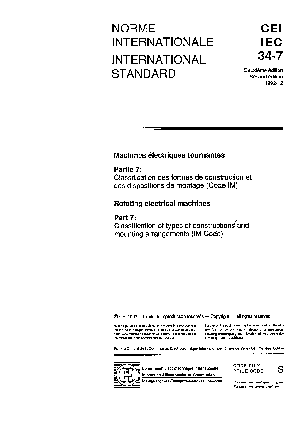IEC 60034-7:1992 Rotating electrical machines - Part 7: Classification of types of constructions and mounting arrangements (IM Code)
