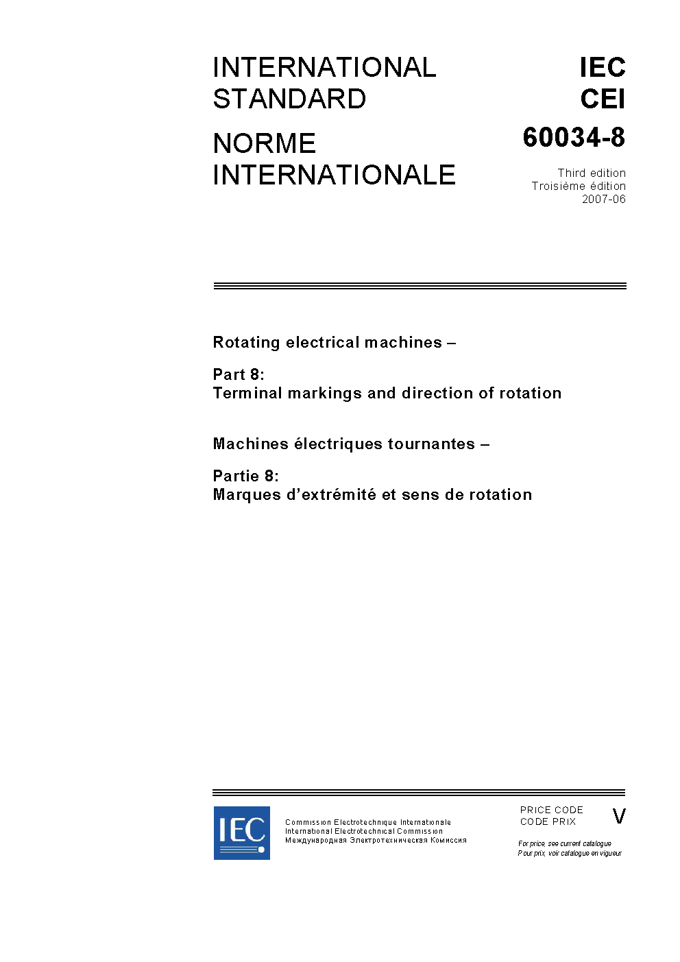 IEC 60034-8:2007 Rotating electrical machines - Part 8: Terminal markings and direction of rotation