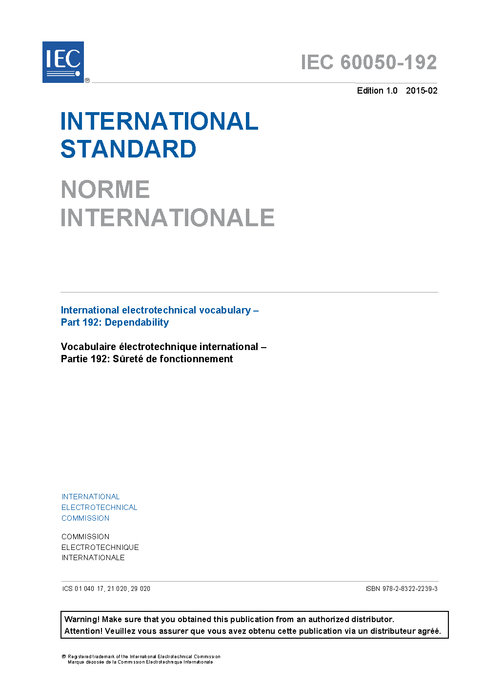 IEC 60050-192:2015 International Electrotechnical Vocabulary (IEV) - Part 192: Dependability
