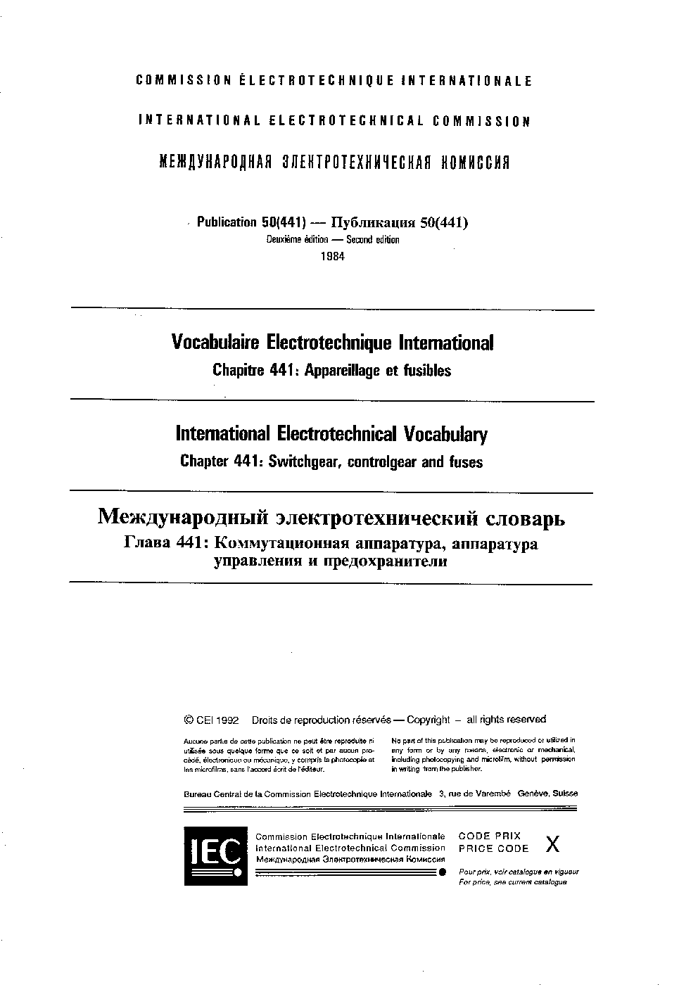 IEC 60050-441:1984/AMD1:2000 Amendment 1 - International Electrotechnical Vocabulary (IEV) - Part 441: Switchgear, controlgear and fuses