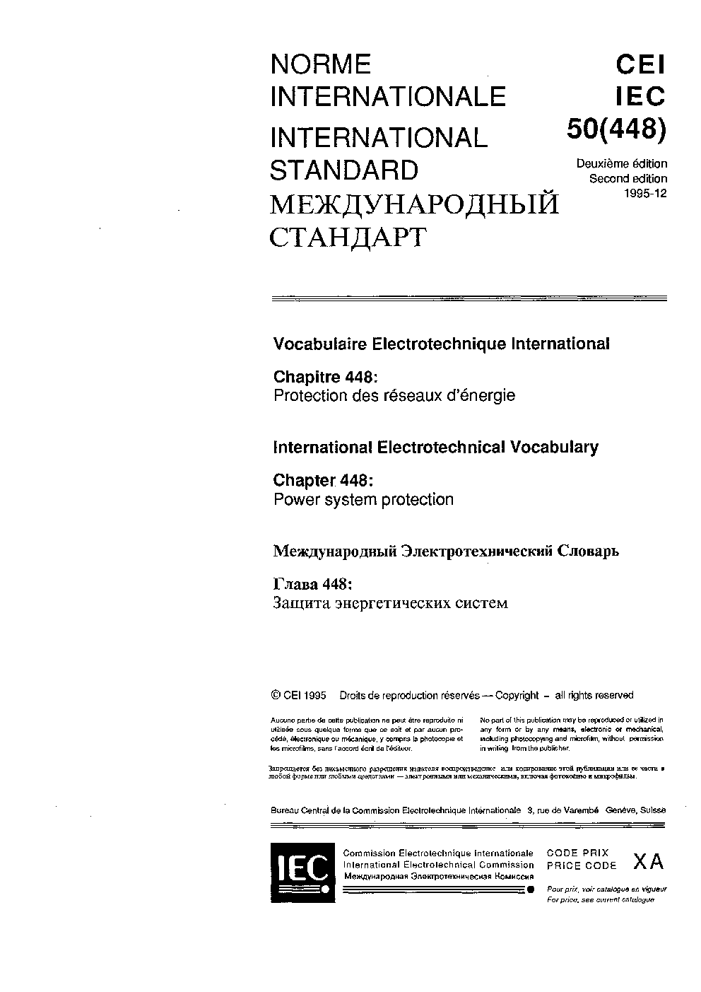 IEC 60050-448:1995 International Electrotechnical Vocabulary (IEV) - Part 448: Power system protection