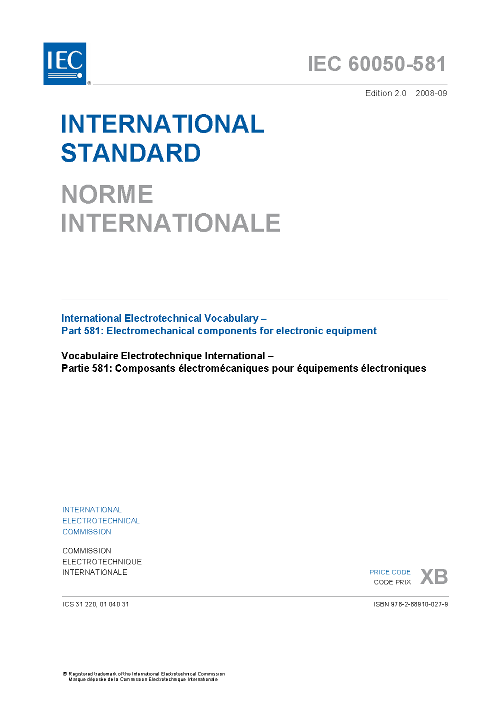 IEC 60050-581:2008 International Electrotechnical Vocabulary (IEV) - Part 581: Electromechanical components for electronic equipment