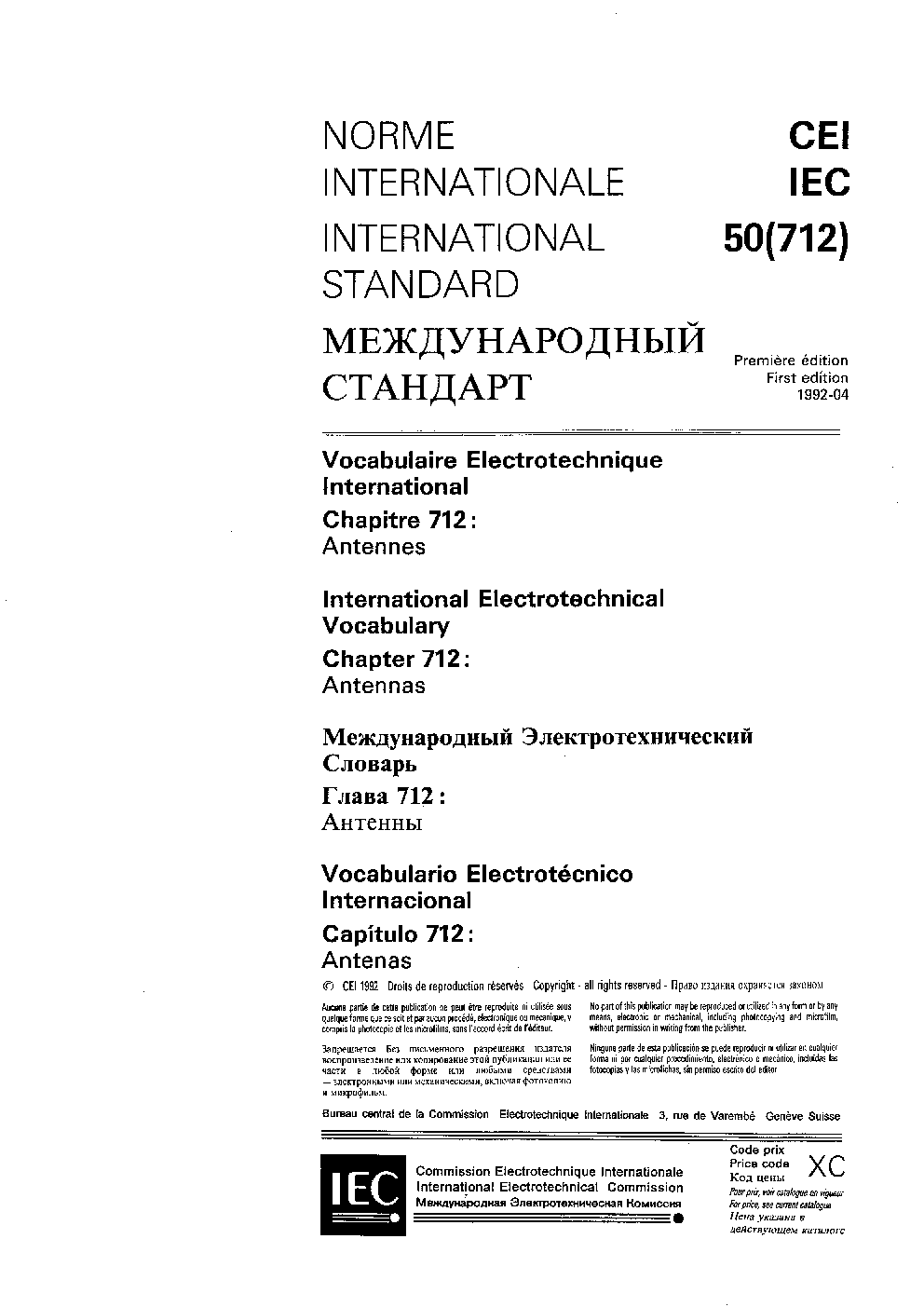 IEC 60050-712:1992/AMD1:2021 Amendment 1 - International Electrotechnical Vocabulary (IEV) - Part 712: Antennas
