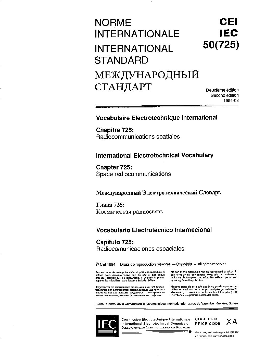 IEC 60050-725:1994/AMD2:2019 Amendment 2 - International Electrotechnical Vocabulary (IEV) - Part 725: Space radiocommunications