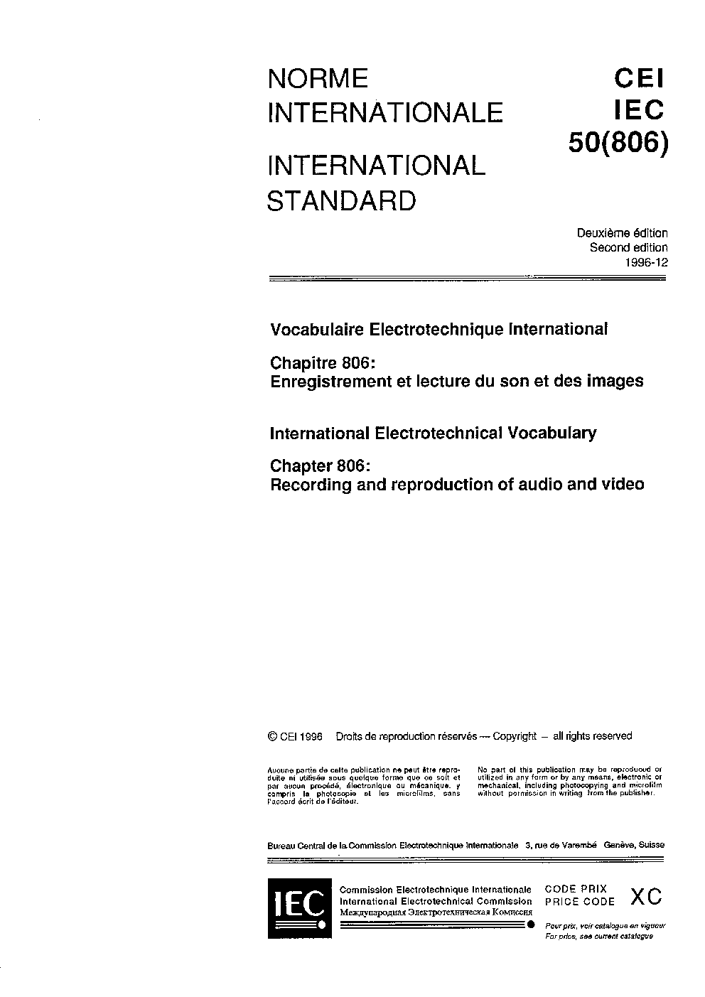 IEC 60050-806:1996/AMD1:2001 Amendment 1 - International Electrotechnical Vocabulary (IEV) - Part 06: Recording and reproduction of audio and video